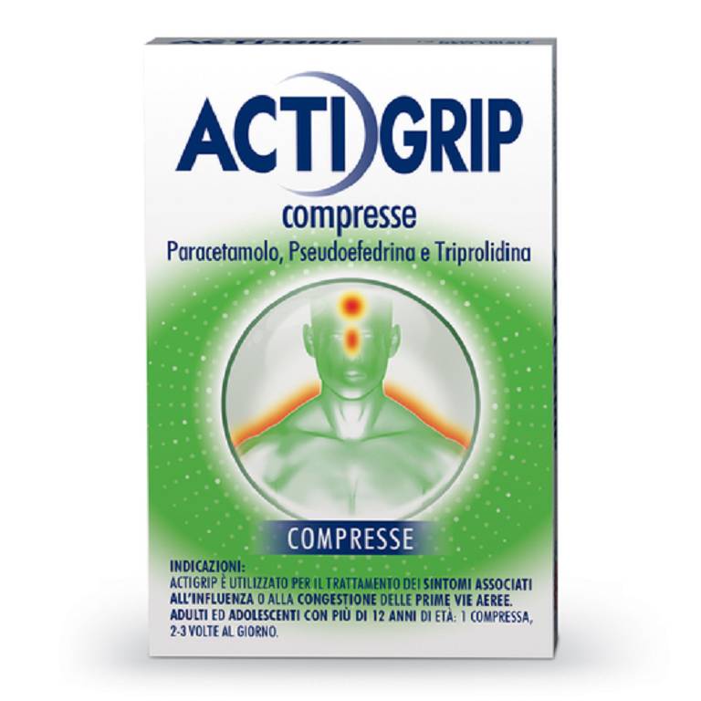 Dati provenienti da trial clinici: non sono disponibili dati sufficienti a riportare le reazioni avverse di studi randomizzati controllati con placebo per la combinazione di parcetamolo, pseudoefedrina e triprolidina. Di seguito sono riportate le reazioni avverse segnalate con una frequenza >=1%, individuate in studi randomizzati controllati con placebo: con formulazioni contenenti pseudofedrina come singola sostanzaattiva: bocca secca, nausea, capogiro, insonnia e nervosismo; con formulazioni contenenti paracetamolo e pseudoefedrina: nervosismo. Dati provenienti dall'esperienza post-marketing: di seguito vengono riportati gli eventi avversi identificati durante l'esperienza post marketingcon paracetamolo, pseudoefedrina, la combinazione di pseudoefedrina etriprolidina, la combinazione di pseudoefedrina e paracetamolo o la combinazione di paracetamolo, pseudoefedrina e triprolidina. Le reazioniavverse sono riportate di seguito secondo le categorie di frequenza che utilizzano la seguente convenzione: molto comune (>= 1/10); comune(>= 1/100, <1/10); non comune (>= 1/1.000, < 1/100); raro (>= 1/10, 000, <1/1.000); molto raro (<1/10.000); non nota (la frequenza non puo'essere definita sulla base dei dati disponibili). Disturbi psichiatrici. Non nota: allucinazioni, ansia, nervosismo, irrequietezza, allucinazione visiva. Patologie del sistema nervoso. Non nota: parestesia, iperattivita' psicomotoria, accidente cerebrovascolare, encefalopatia posteriore reversibile (pres), sindrome da vasocostrizione cerebrale reversibile (rcvs). Patologie cardiache. Non nota: aritmia, palpitazioni,infarto del miocardio. Patologie respiratorie, toraciche e mediastiniche. Non nota: epistassi. Patologie della cute e del tessuto sottocutaneo. Non nota: prurito, eruzione cutanea pruriginosa, orticaria, pustolosi esantematica acuta generalizzata, angioedema, eruzione fissa. Patologie renali e urinarie. Non nota: disuria. Patologie gastrointestinali. Non nota: colite ischemica. Patologie sistemiche e condizioni relative alla sede di somministrazione. Non nota: sentirsi nervoso. Esami diagnostici. Non nota: aumento delle transaminasi*, pressione arteriosaaumentata. Patologie dell'occhio. Non nota: neuropatia ottica ischemica. ^* un leggero aumento dei livelli di transaminasi puo' verificarsiin alcuni pazienti che assumono dosaggi raccomandati di paracetamolo.Questi casi non sono accompagnati da insufficienza epatica e generalmente si risolvono con il proseguimento o la sospensione della terapiacon paracetamolo. Actigrip puo' causare inoltre. Patologie del sistemanervoso: convulsioni, sonnolenza, tremori, eccitazione, vertigini, cefalea (specie negli anziani). Patologie della cute e del tessuto sottocutaneo: angioedema,eruzione cutanea, fotosensibilizzazione, reazionicutanee gravi, inclusi casi di eritema multiforme, sindrome di StevensJohnson e necrolisi epidermica tossica. Patologie sistemiche e condizioni relative alla sede di somministrazione: astenia, sudorazione. Patologie respiratorie, toraciche e mediastiniche: iperviscosita' delle secrezioni bronchiali aumentate. Patologie gastrointestinali: bocca secca, fastidio addominale, stipsi, nausea, vomito, diarrea. Disturbi psichiatrici: insonnia, euforia. Patologie cardiache: extrasistole, tachicardia, ipotensione (specie negli anziani). Patologie del sistema immunitario: reazioni di ipersensibilita', edema della laringe, reazione anafilattica. Patologie del sistema emolinfopoietico: trombocitopenia,leucopenia, neutropenia, anemia, agranulocitosi. Patologie epatobiliari: disturbi della funzionalita' epatica, epatiti. Patologie renali e urinarie: ritenzione urinaria, alterazioni a carico del rene, insufficienza renale acuta, nefrite interstiziale, ematuria, anuria. Patologiedell'occhio: attacco acuto di glaucoma ad angolo chiuso, midriasi, visione offuscata. In casi isolati, si e' verificato ictus emorragico inpazienti che hanno utilizzato farmaci contenenti pseudoefedrina. In particolare, questi incidenti cerebrovascolari si sono verificati durante sovradosaggio, uso improprio e/o in pazienti con fattori di rischiovascolare. Segnalazione delle reazioni avverse sospette. La segnalazione delle reazioni avverse sospette che si verificano dopo l'autorizzazione del medicinale e' importante, in quanto permette un monitoraggiocontinuo del rapporto beneficio/rischio del medicinale. Agli operatorisanitari e' richiesto di segnalare qualsiasi reazione avversa sospetta tramite il sistema nazionale di segnalazione all'indirizzo: https://www.aifa.gov.it/content/segnalazioni-reazioni-avverse.