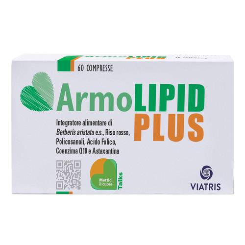 Integratore alimentare di Berberis aristata e.s., riso rosso fermentato (Monascus purpureus), policosanoli, acido folico, coenzima Q10 e oleoresina ricca di astaxantina derivata dall'alga Haematococcus pluvialis.