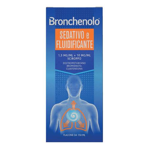 Bronchenolo Sedativo e Fluidificante deve essere utilizzato solo dopoattenta valutazione medica in caso di: - tosse cronica o persistente,di cui vanno indagate le cause che richiedono un trattamento eziologico specifico; - grave insufficienza epatica e renale. Nel caso in cui la tosse dovesse persistere, peggiorare o essere accompagnata da febbrealta, eruzione cutanea o cefalea persistente si raccomanda di rivalutare il quadro clinico. Il destrometorfano puo' dare assuefazione. A seguito di un uso prolungato, i pazienti possono sviluppare tolleranza al medicinale, cosi' come dipendenza mentale e fisica (vedere paragrafo4.8). Sono stati riportati casi di abuso e dipendenza di destrometorfano. Si raccomanda di prestare particolare attenzione con adolescentie giovani adulti e bambini, nonche' con pazienti con una storia di alcolismo, di abuso di farmaci o sostanze psicoattive. I pazienti con tendenza all'abuso o alla dipendenza devono assumere Bronchenolo Sedativoe Fluidificante per brevi periodi ed essere attentamente monitorati.L'assunzione di alcol durante il trattamento e' da sconsigliare. Il destrometorfano e' metabolizzato dal citocromo epatico P450 2D6 (vedereparagrafo 5.2). L'attivita' di questo enzima e' geneticamente determinata. Circa il 10% della popolazione metabolizza lentamente il CYP2D6.In metabolizzatori lenti e pazienti con uso concomitante di inibitoridel CYP2D6 possono manifestarsi effetti esagerati e/o prolungati del destrometorfano. E' necessario pertanto prestare attenzione in pazientimetabolizzatori lenti del CYP2D6 o che utilizzano inibitori del CYP2D6 (vedere paragrafo 4.5). Rischi derivanti dall'uso concomitante di medicinali sedativi come le benzodiazepine o farmaci correlati. L'uso concomitante di Bronchenolo Sedativo e Fluidificante e medicinali ad azione sedativa come le benzodiazepine, o farmaci correlati, puo' causaresedazione, depressione respiratoria, come e morte. A causa di questirischi, la prescrizione concomitante con medicinali ad azione sedativadeve essere limitata ai pazienti per i quali non sono possibili trattamenti alternativi. Se viene presa la decisione di prescrivere Bronchenolo Sedativo e Fluidificante insieme a medicinali ad azione sedativa,deve essere usata la dose minima efficace e la durata del trattamentodeve essere la piu' breve possibile (vedere anche le raccomandazionigenerali sulla dose al paragrafo 4.2). I pazienti devono essere seguiti attentamente per riconoscere segni e sintomi di depressione respiratoria e sedazione. A tale riguardo, e' fortemente raccomandato di informare i pazienti e chi si prenda cura di loro (ove applicabile) in modoche siano consapevoli di questi sintomi (vedere paragrafo 4.5). Sindrome da serotonina: effetti serotoninergici, incluso lo sviluppo di unasindrome da serotonina potenzialmente letale, sono stati segnalati per destrometorfano con somministrazione concomitante di agenti serotoninergici, come gli inibitori selettivi della ricaptazione della serotonina (selective serotonin reuptake inhibitors, SSRI), farmaci che alterano il metabolismo della serotonina (tra cui gli inibitori della monoammino-ossidasi [monoamine oxidase inhibitors, MAOI]) e gli inibitori del CYP2D6. La sindrome da serotonina puo' includere variazioni dello stato mentale, instabilita' autonomica, anomalie neuromuscolari e/o sintomi gastrointestinali. Qualora si sospetti una sindrome da serotonina, il trattamento con Bronchenolo Sedativo e Fluidificante dovra' essere interrotto (vedere paragrafi 4.4 e 4.8). Il destrometorfano deve essere utilizzato con cautela in pazienti che prendono farmaci serotoninergici come gli inibitori selettivi della ricaptazione di serotonina (SSRI) o gli antidepressivi triciclici (vedere paragrafo 4.5). Deve essere evitato l'uso contemporaneo di altri medicinali per la tosse e il raffreddore. Popolazione pediatrica: nei bambini possono verificarsi eventi avversi gravi, inclusi disturbi neurologici. A tale riguardo, siraccomanda fortemente di informare chi si prende cura di loro (ove applicabile) in modo che siano consapevoli dei possibili sintomi di depressione respiratoria e sedazione. Informazioni sugli eccipienti con effetti noti. Bronchenolo Sedativo e Fluidificante sciroppo contiene: saccarosio liquido: contiene 7,35 g di saccarosio (zucchero) per una dosedi 10 ml. Da tenere in considerazione in pazienti con diabete mellito. I pazienti affetti da rari problemi ereditari di intolleranza al fruttosio, da malassorbimento di glucosio-galattosio, o da insufficienzadi sucrasi isomaltasi, non devono assumere questo medicinale; alcol etilico: questo medicinale contiene 480 mg di alcol (etanolo) in ogni dose di 10 ml. La quantita' in 10 ml di questo medicinale e' equivalentea 12 ml di birra e 5 ml di vino. Puo' essere dannoso per gli alcolisti. Da tenere in considerazione nelle donne in gravidanza o in allattamento, nei bambini e nei gruppi ad alto rischio come le persone affetteda patologie epatiche o epilessia. Una dose di 10ml di questo medicinale somministrato ad un bambino di eta' pari a 12 anni e peso inferiore o uguale a 32kg comporterebbe un'esposizione di 15 mg che puo' causare un aumento della concentrazione di alcool nel sangue (BAC) di circa2,5 mg/100ml. La co-somministrazione con medicinali contenenti per es. glicole propilenico o etanolo possono portare all'accumulo di etanolo e indurre effetti avversi, in particolare nei bambini piccoli con attivita' metabolica bassa o immatura; propile e metile para-idrossibenzoati, che possono causare reazioni allergiche (anche ritardate); sodio: questo medicinale contiene meno di 1 mmole di sodio (23 mg), cioe' essenzialmente senza sodio. Bronchenolo Sedativo e Fluidificante pastiglie gusto menta contiene: saccarosio: contiene 2,08 g di saccarosio per dose. I pazienti affetti da rari problemi ereditari di intolleranzaal fruttosio, da malassorbimento di glucosio-galattosio, o da insufficienza di sucrasi isomaltasi, non devono assumere questo medicinale; aspartam