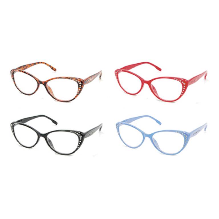 Occhiale da lettura con strass effetto lucido. Asta con sistema flex per una migliore aderibilità al viso. Modello donna.