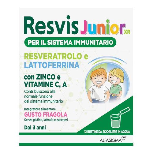 latte), D,L-alfa-tocoferil acetato (vitamina E), zinco citrato, aroma fragola; correttore di acidità: acido citrico; retinil palmitato (vitamina A), succo di barbabietola (Beta vulgaris L.) in polvere, resveratrolo (da radici di Polygonum cuspidatum Siebold & Zucc.) titolato al 90%; edulcorante: sucralosio.