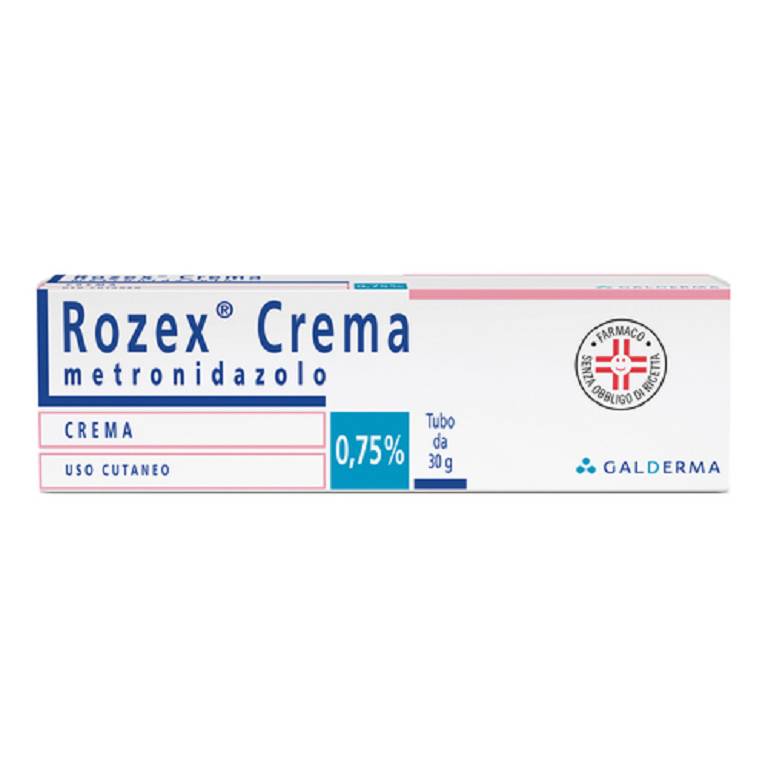 Evitare il contatto con gli occhi e le mucose. In corso di terapia conmetronidazolo evitare l'esposizione ai raggi UV (esposizione ai raggisolari, solarium e lampade solari). Il metronidazolo si converte in metabolita inattivo per effetto dell'esposizione UV, pertanto la sua efficacia diminuisce significativamente. Negli studi clinici non sono stati riportati effetti indesiderati di fototossicita' in relazione al metronidazolo. Qualora dovesse manifestarsi una reazione dovuta ad irritazione locale, si consiglia di ridurre il numero delle applicazioni giornaliere del farmaco o di sospenderne la somministrazione secondo ilparere del medico. Il metronidazolo e' un composto nitroimidazolico eva quindi impiegato con prudenza nei pazienti con discrasia ematica.Evitare l'uso non necessario e prolungato di questo medicinale. E' dimostrato che il metronidazolo e' cancerogeno in alcune specie animali.Non ci sono dati che dimostrino il suo effetto cancerogeno nell'uomo.Informazioni importanti su alcuni eccipienti. Rozex 0,75% crema contiene: alcool cetilstearilico che puo' causare reazioni sulla pelle localizzate (ad es. dermatite da contatto). Questo medicinale contiene inoltre 22 mg di alcol benzilico (E1519) per grammo, equivalente a 2,2% w/w, che puo' causare reazioni allergiche e lieve irritazione locale.