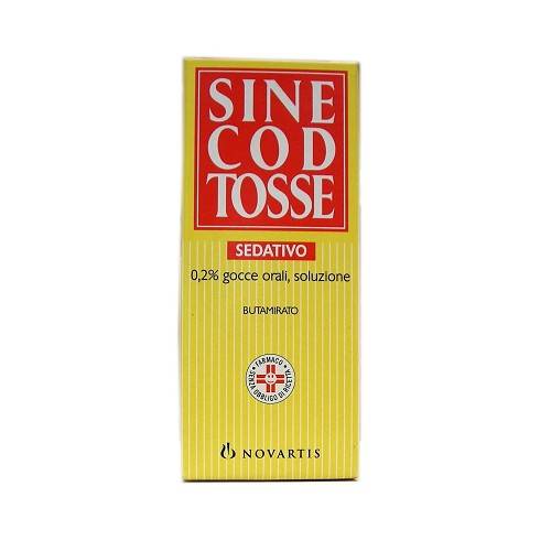 Sinecod Tosse Sedativo 2 mg/ml gocce orali, soluzione, 1 g di soluzione (pari a 20 gocce) contiene; principio attivo: butamirato citrato 2 mg (pari a butamirato 1,3 mg circa). Eccipienti con effetti noti: etanolo 96 per cento, metile paraidrossibenzoato, saccarosio. Sinecod TosseSedativo 3 mg/10 g sciroppo, 100 g di sciroppo contengono; principioattivo: butamirato citrato 0,0345 g (pari a butamirato mg 21,3 ca). Eccipienti con effetti noti: etanolo, metile paraidrossibenzoato, sorbitolo. Sinecod Tosse Sedativo 5 mg pastiglie, una pastiglia contiene; principio attivo: butamirato citrato 5 mg (pari a butamirato mg 3,1 ca).Per l'elenco completo degli eccipienti, vedere paragrafo 6.1.